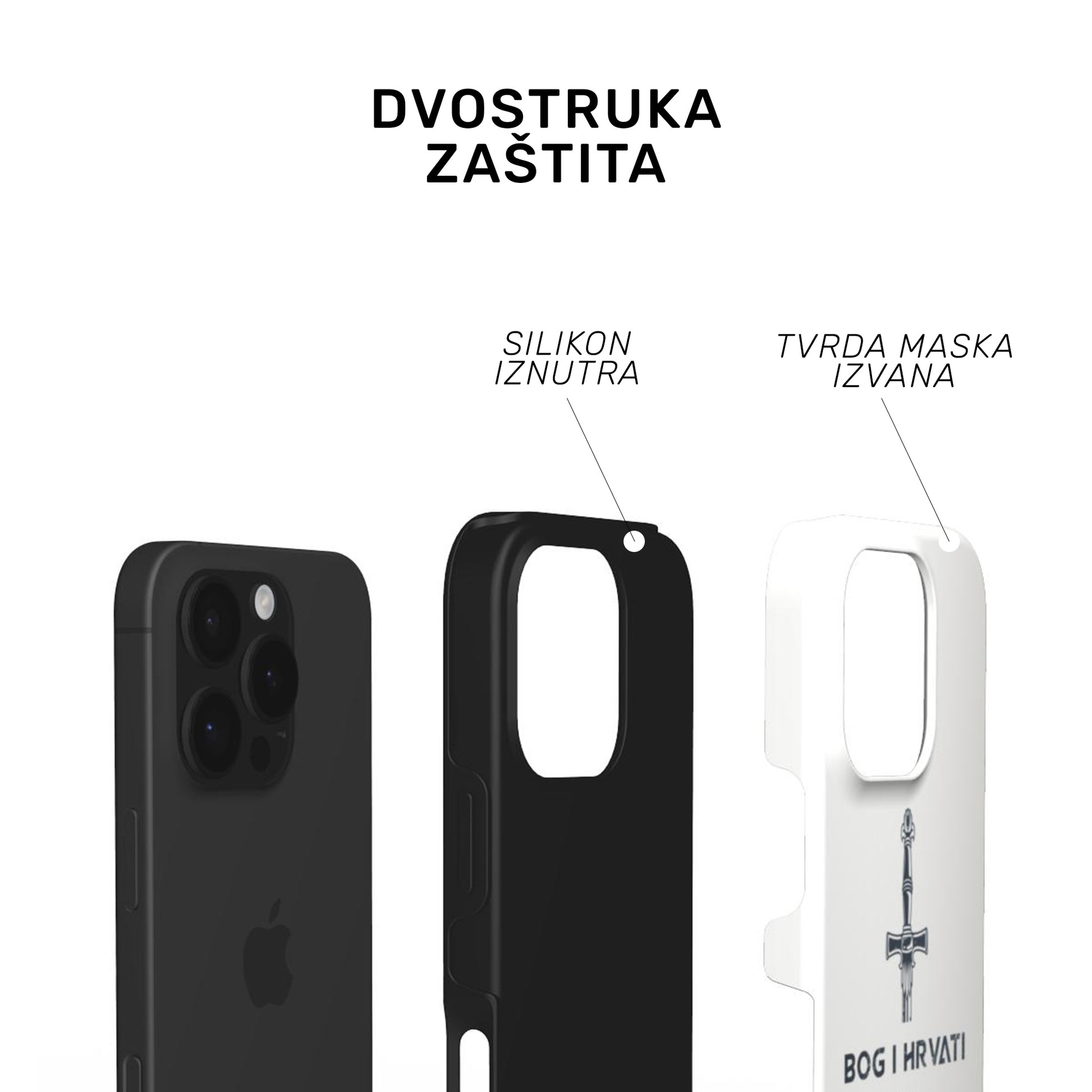 Vanjska maskica od tvrdog polikarbonata (PC) uparuje se s mekom TPU silikonskom unutrašnjosti za pojačanu zaštitu od ogrebotina i udaraca.